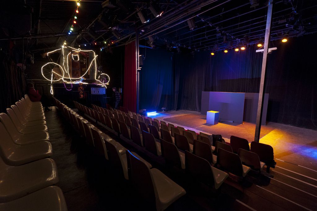 En configuration théâtre, la salle de spectacle est équipée d’un gradin de 108 places avec des banquettes porteuses de l’histoire du théâtre, puisqu'elles furent celles de l’équipe de Jean Vilar dans les années 30. Elles ont, entre autre, été utilisées par le TNP au Théâtre de l’Étincelle à Marseille, puis elles ont accompagné les premiers pas du Festival d'Avignon.